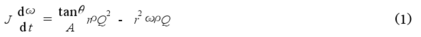式中J為葉片轉(zhuǎn)動(dòng)慣量,θ為葉與軸線之間的夾角,r?yàn)闇u輪葉片的平均半徑,A為管道流量面積,ρ為流體密度,ω為渦輪的旋轉(zhuǎn)角加速度,Q為通過(guò)管道的流量。