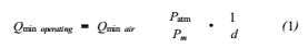 式中:Qmin operating為工作條件下的*小流量;Qmin air為工廠給出的*小流量;Patm為標定時的壓力,通常為當?shù)卮髿鈮海籔m為工作條件下的壓力(絕對壓);d為被測氣體的相對密度。
