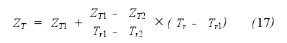 當溫度為T1時,對比溫度為Tr1,壓縮系數(shù)為ZT1;當溫度為T2時,對比溫度為Tr2,壓縮系數(shù)為ZT2;實際氣體測量中,氣體組分的變化一般不會太大,因此設(shè)Tm、Pm值不變。若溫度為T,T1<T<T2,利用線性插值可算出測量點的壓縮系數(shù)ZT: