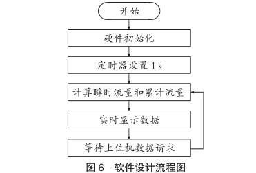 上電后程序?qū)SP的硬件資源進行初始化,包括中斷系統(tǒng)、GPIO口、定時器/計數(shù)器、通信端口及基本的時鐘設置。程序每秒對接收到的脈沖進行計數(shù),其除以儀表系數(shù)后的結(jié)果作為瞬時流量,同時在時間上對瞬時流量進行累積,計算出兩種流量后,將其實時顯示在液晶顯示屏上,同時將數(shù)據(jù)保存,**等待上位機電腦對數(shù)據(jù)的讀取。通信采用MODBUS協(xié)議,波特率為9600b/s,無校驗,8位數(shù)據(jù)位,1位停止位。圖6為微處理器功能設計流程圖。