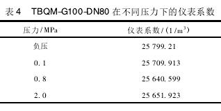 計算所得的不同壓力下儀表系數(shù)如表3和表4所示。