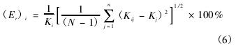 隨著工作壓力的變化,渦輪流量計儀表系數(shù)的變化很小。參考JJG1037—2008《渦輪流量計檢定規(guī)程》計量檢定規(guī)程中流量計的重復(fù)性的計算方法,可以定義不同壓力下渦輪流量計儀表系數(shù)的重復(fù)性為: