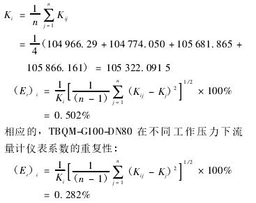 計算得出TBQM-G65-DN50在不同工作壓力下流量計儀表系數(shù)的重復(fù)性: