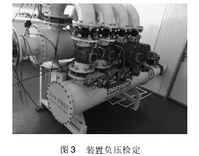 采用DresserInnovativeGasMeteringSolutions裝置進(jìn)行負(fù)壓檢定,如圖3所示,其流量范圍為0.5~1600m3/h,檢測口徑為DN25~DN150,不確定度為0.25%。