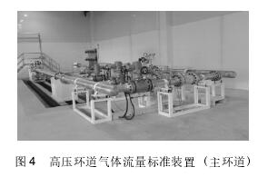 高壓環(huán)道氣體流量標(biāo)準(zhǔn)裝置,如圖4所示,該裝置可在實際工作的壓力狀態(tài)下檢測流量計的性能,主要部件都來自德國,是國內(nèi)*臺閉環(huán)式高壓氣體裝置。其流量范圍為1~2500m3/h,檢測口徑為DN20~DN250,工作壓力范圍為0.1~2.0MPa,不確定度為0.33%。目前,我司的高壓環(huán)道裝置已將量傳到歐洲VSL國際標(biāo)準(zhǔn)實驗室,也正在申請國內(nèi)取證和建標(biāo),并且正在和浙江省院以及中國計量院做實驗對比工作。采用該套裝置進(jìn)行壓力為0.1MPa、0.8MPa和2.0MPa的檢定。
