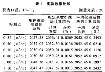 被檢儀表:公稱通徑分別為10mm和15mm的渦輪流量傳感器各一臺(tái);檢定裝置:靜態(tài)稱重法標(biāo)準(zhǔn)水流量檢定裝置,系統(tǒng)精度+0.2%。分別采用常規(guī)的平均儀表系數(shù)法和檢定系數(shù)折線法進(jìn)行標(biāo).定,并與作為標(biāo)準(zhǔn)的靜態(tài)稱重法的檢定結(jié)果進(jìn)行比對(duì),結(jié)果見(jiàn)表1.表2。