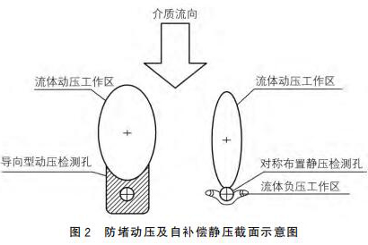 新甲苯計量表采用拋物面導向型結構作為動壓測點,采用對稱自補償型式的靜壓測點,可以有效地解決來流方向偏流時信號的穩(wěn)定采集,來流偏離管道軸線時,可以維持輸出差壓基本不變,如圖2所示。