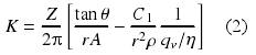 層流狀態(tài)下甲醇流量計(jì)儀表系數(shù)數(shù)學(xué)模型[9]為