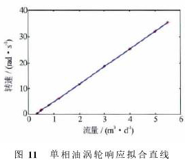 可以看出,渦輪啟動后*先進入一個非線性段,在非線性相應段,K值隨著流量增加而增大;當流量比較大(單相水超過0.5m3/d,單相油超過1m3/d)時,渦輪進入線性段,在線性響應段,K值達到峰值,有相對較小的波動。