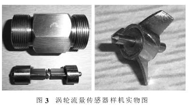 實驗采用口徑為DN10的渦輪流量傳感器,如圖3所示。實驗中選擇10℃進行實驗測試,對應(yīng)的流體介質(zhì)的粘度為43.49cSt。選取0.3m3/h、0.5m3/h、0.7m3/h、0.9m3/h、1.1m3/h、1.3m3/h和1.5m3/h共7個流量點進行,實驗流量范圍為0.3m3/h到1.5m3/h。