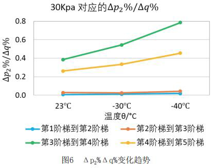 為了更直觀嚴(yán)謹(jǐn)?shù)膶Ρ让總€(gè)階段響應(yīng)速度的不同,對原始數(shù)據(jù)進(jìn)行處理,得到如下表格2和表格3。將△p2%/△q%作為響應(yīng)速度的直觀量化表達(dá),若△p2%/△q%的值大,說明單位流量變化照成的出口壓力變化大,即說明液體智能渦輪流量計(jì)響應(yīng)相對較慢,反之亦然。
