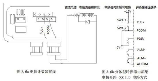 3.4.5 頻率(脈沖)、上下限報(bào)警、流向標(biāo)示等輸出均為集電*開路的電平輸出信號。