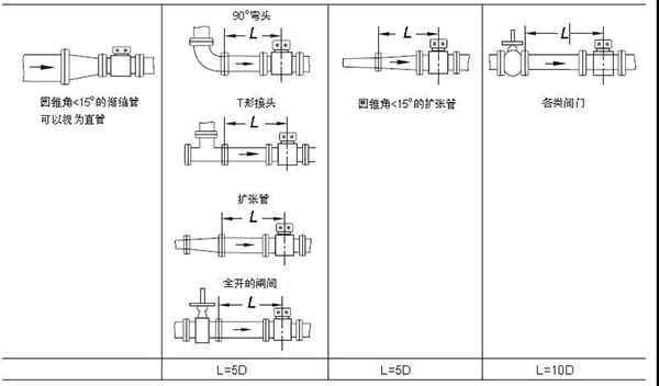 圖4 對傳感器上游側(cè)直管段的要求
