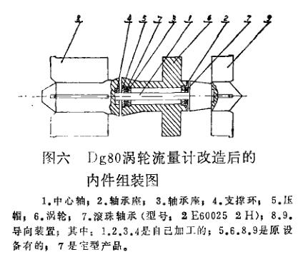 使甩中譯杯料在液氨中發(fā)生膨脹,會(huì)使渦輪轉(zhuǎn)速減小,甚至轉(zhuǎn)不動(dòng)。以后改為石墨軸.早t。使用甲段時(shí)間,由于軸承受滑動(dòng)摩擦,李乍期高速雄轉(zhuǎn)下很快磨損,間隙增大,渦羚軸串動(dòng),造成計(jì)量不準(zhǔn)?!,F(xiàn)在釋們改用不銹鋼滾珠軸承,這樣將滑動(dòng)摩擦改為滾動(dòng)摩擦,起動(dòng)轉(zhuǎn)矩小,轉(zhuǎn)動(dòng)靈活。近兩年在每年一度大檢修中,拆下檢查沒(méi)有發(fā)現(xiàn)什么問(wèn)題(改制零件的詳細(xì)情況見(jiàn)圖二、三、四、五、六)。