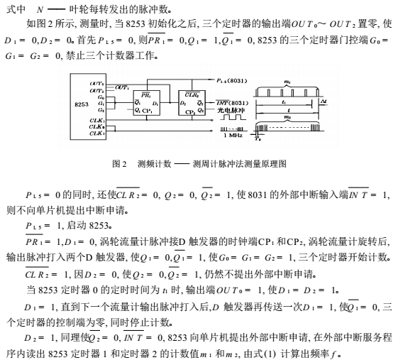 目前, 水泵流量的測(cè)量方法很多, 其中渦輪流量計(jì)使用方便, 價(jià)格適宜, 使用甚廣。利用其優(yōu)點(diǎn), 采用測(cè)頻計(jì)數(shù)——測(cè)周計(jì)脈沖法, 可有效地控制誤差, 提高測(cè)試精度。