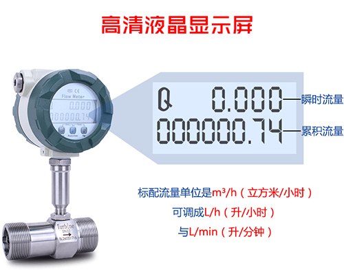 渦輪流量計是采用一體化液體渦輪流量計結(jié)構為防爆設計,可以顯示流量總量,瞬時流量和流量滿度百分比。電池采用長效鋰電池,單功能積算表電池使用壽命可達5年以上,多功能顯示表電池使用壽命也可達到12個月以上。渦輪流量計是一體化表頭可以顯示的流量單位眾多,有立方米,加侖,升,標準立方米,標準升等,可以設定固定壓力、溫度參數(shù)對氣體進行補償,對壓力和溫度參數(shù)變化不大的場合,可使用該儀表進行固定補償積算。